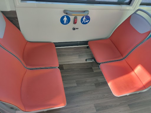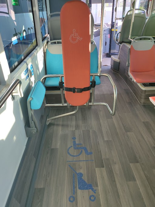 Se identifican mediante un color diferenciado de tapicería y pictogramas distintivos, y cuentan con mayor espacio mayor espacio para facilitar la accesibilidad e, incluso, para acomodar al perro de asistencia en caso necesario.