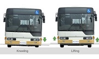 Sistema de arrodillamiento lateral (kneeling) que reduce la altura del vehículo en el lado derecho para facilitar el acceso a pasajeros con discapacidad o movilidad reducida.